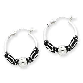 Sterling Silver Antiqued Fancy Beaded Hoop Earrings