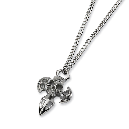 Stainless Steel Black Color IP-plated Skull With Cross Bones Pendant Necklace