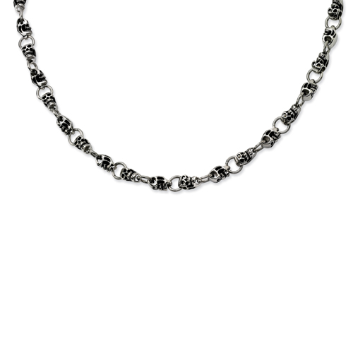 Sterling Silver w/14ky 18in Diamond/Onyx Antiqued 18in Necklace
