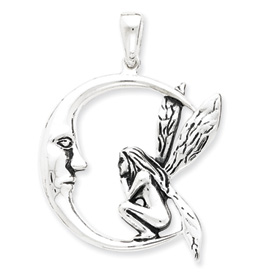Sterling Silver Antiqued Moon/Fairy Pendant