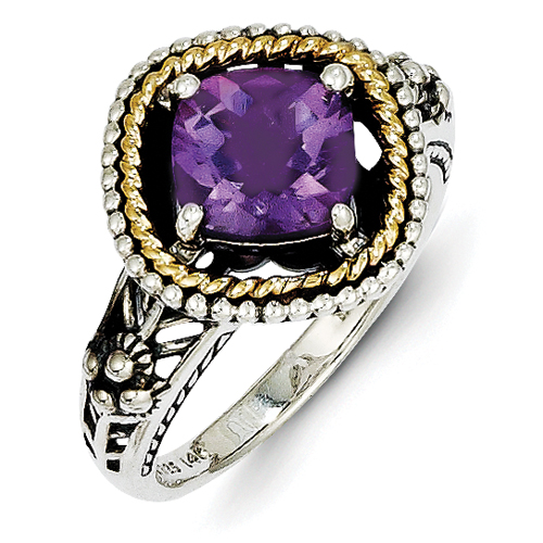 Sterling Silver w/14ky Amethyst Antiqued Ring