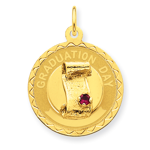 14k Graduation Day Charm with Red Synthetic Stone Charm