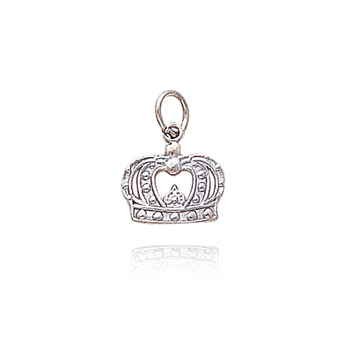 You'll feel like a queen when wearing this royal crown charm. White Gold is crafted into a crown shape and detailed at the front. Add your favorite chain to showcase this charm.