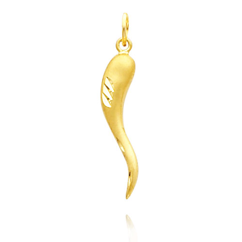 14K Yellow Gold Satin & Diamond-Cut Large Italian Horn Charm
