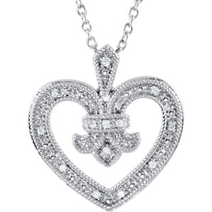 14kt White Necklace Diamond .02CTW Diamond Heart Necklace