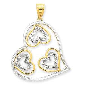 14K Gold And Rhodium Diamond-Cut Heart Pendant