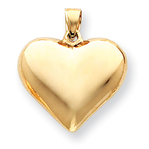 14K Yellow Gold Large Etched Puffed Heart Pendant