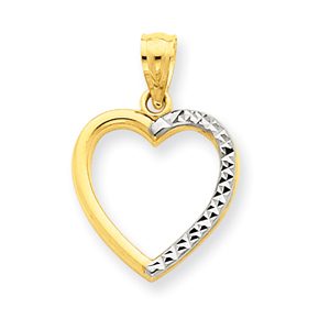 14K Gold & Rhodium Half Diamond-Cut Heart Pendant