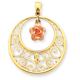 14K Two-Tone Gold Diamond Cut Rose Circle Pendant