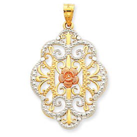 14K Two-Tone Gold & Rhodium Filigree Flower Pendant