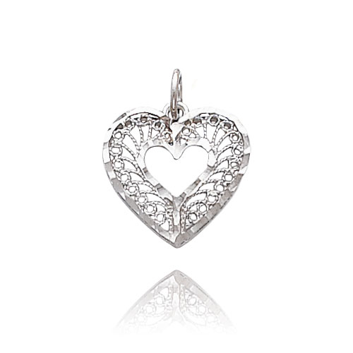 14K White Gold Diamond-Cut Filigree Heart Charm
