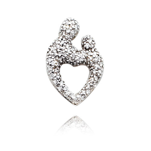 14K White Gold Heart Shaped .63ct. Diamond Mother & Child Pendant