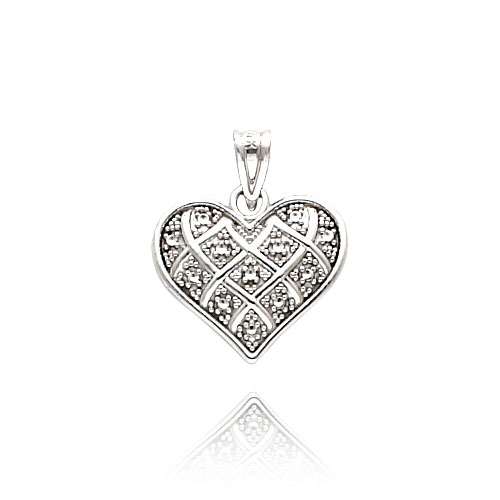 14K White Gold Small Diamond-Cut Quilted Heart Pendant