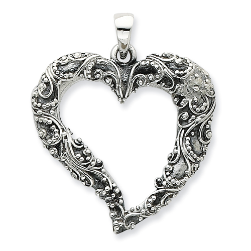 Sterling Silver Antiqued & Polished Heart Pendant