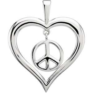 Sterling Silver Heart Peace Sign Pendant