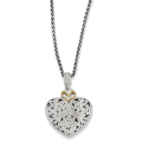 Sterling Silver w/14ky Diamond Vintage Heart Pendant