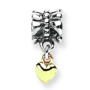 Sterling Silver & 14K Gold Reflections Heart Dangle Bead