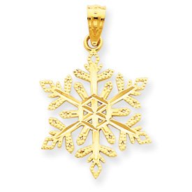 14K Gold Diamond -Cut Snowflake Pendant