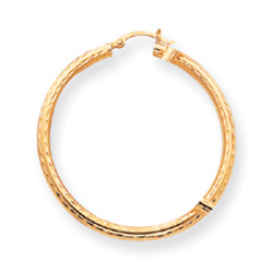 14K Gold Diamond-Cut 3x45mm Round Hoop Earrings
