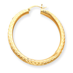 14K Gold Diamond-Cut 4x45mm Round Hoop Earrings