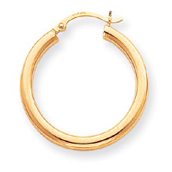 14K Gold Polished 3x28mm Round Hoop Earrings