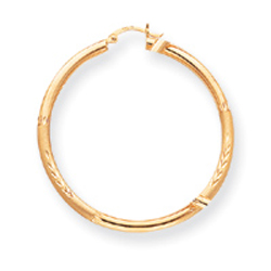 14K Gold Satin & Diamond-Cut 3x50mm Round Hoop Earrings