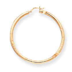 14K Gold Satin & Diamond-Cut 3x55mm Round Hoop Earrings