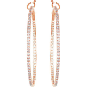 Diamond Hoop Earrings Quality: 14K Rose Size: PAIR 2 3/4 CT TW DIAMOND HOOP EARRINGS Weight: 12.91 GM Total Carat Weight: 0.0000 CT Primary Metal Composition: Gold | Stone Quantity | Stone Size | Stone | | 134 | 2.750 Ct -- 1.60 MM | I1/ H -I Round Diamond Round |