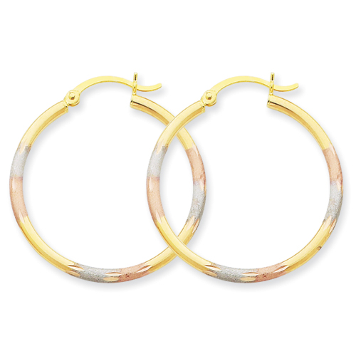 14K Tri-color 2mm Diamond-cut Earrings