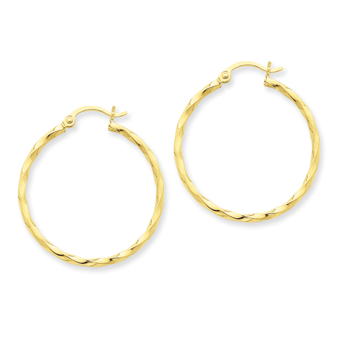 14K Yellow Gold 3x45mm Diamond Cut Tube Hoops