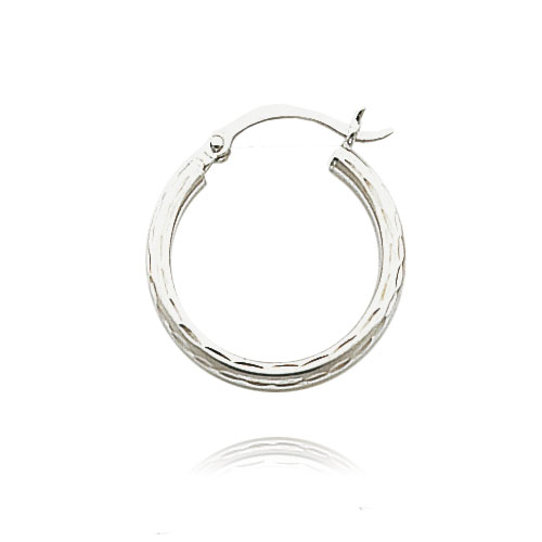 14K White Gold 2x15mm Diamond Cut Round Tube Hoops