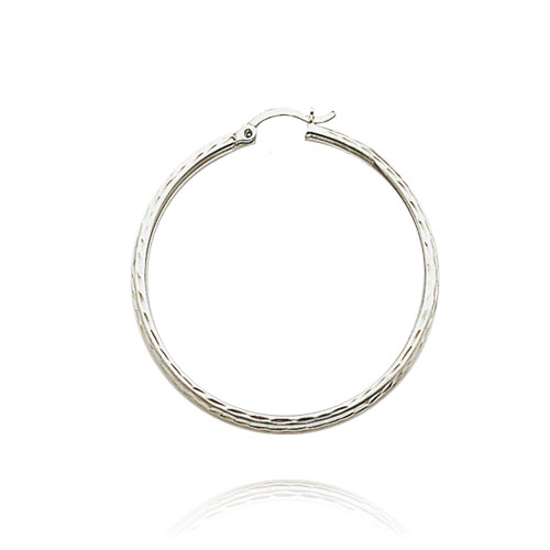 14K White Gold 2x35mm Diamond Cut Round Tube Hoops