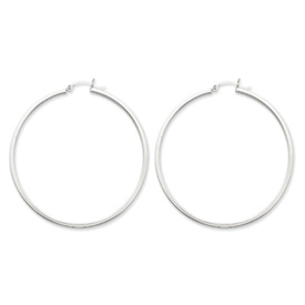 14K White Gold Diamond-Cut 3x65mm Round Hoop Earrings