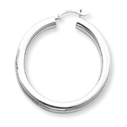 14K White Gold Polished 5x45mm Tube Hoop Earrings