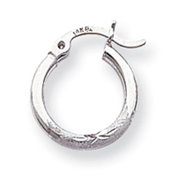 Picture of 14K White Gold Satin & Diamond-Cut 2x15mm Round Hoop Earrings