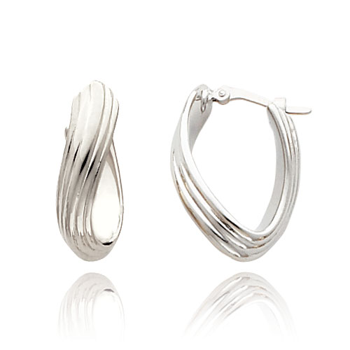 14K White Gold Twisted And Ridged Oval Hoop Earrings