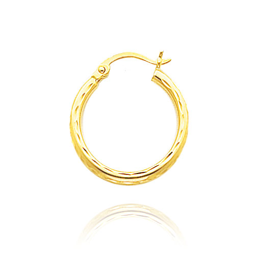 14K Yellow Gold 2x15mm Diamond Cut Round Tube Hoops