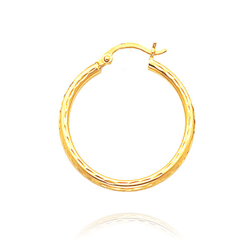 14K Yellow Gold 2x20mm Diamond Cut Round Tube Hoops
