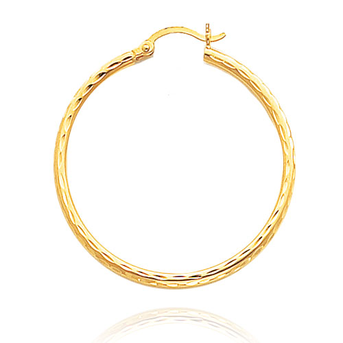 14K Yellow Gold 2x30mm Diamond Cut Round Tube Hoops