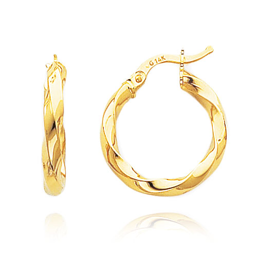 14K Yellow Gold 3.25x15mm Twisted Hoops