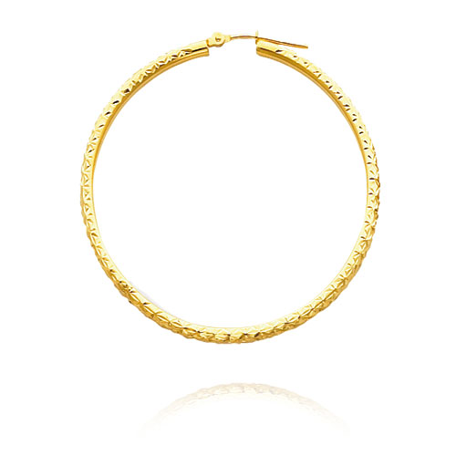 14K Yellow Gold 3x45mm Diamond Cut Tube Hoops