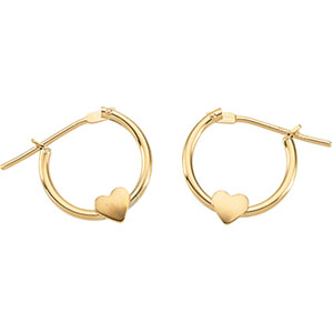14K Yellow PAIR 12.00 MM CHILDRENS HOOP WITH HEART EARRING Youth Hoop With Heart Earr