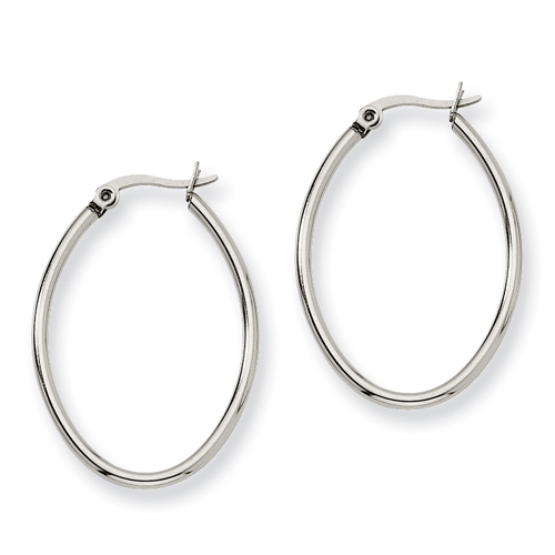 Stainless Steel 2x25mm Diameter Oval Hoop Earrings