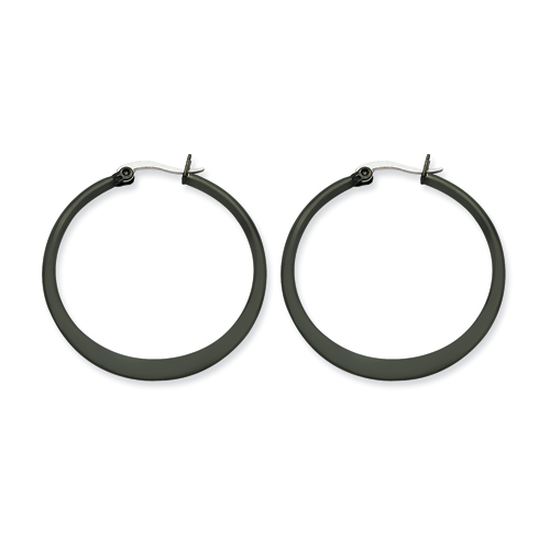 Stainless Steel Black-plated 34mm Hoop Earrings