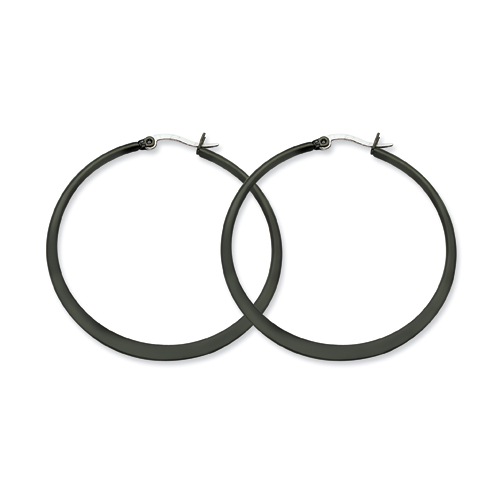 Stainless Steel Black-plated 55mm Hoop Earrings