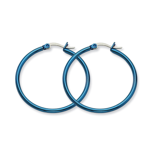 Stainless Steel Blue 32mm Hoop Earrings