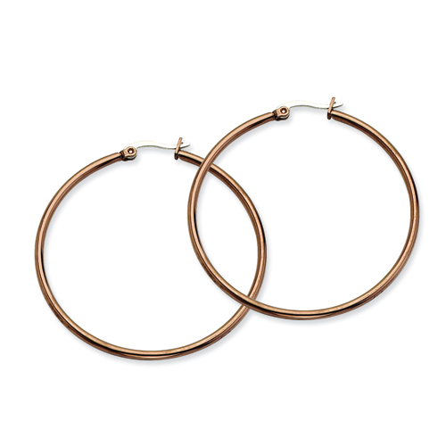 Stainless Steel Chocolate-plated 49.5mm Hoop Earrings