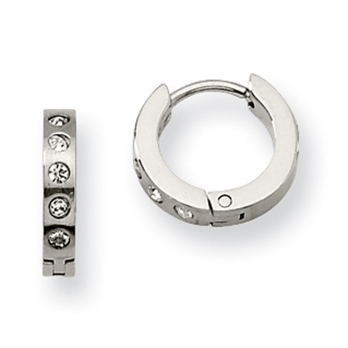 Stainless Steel CZ Hinged Hoop Earrings