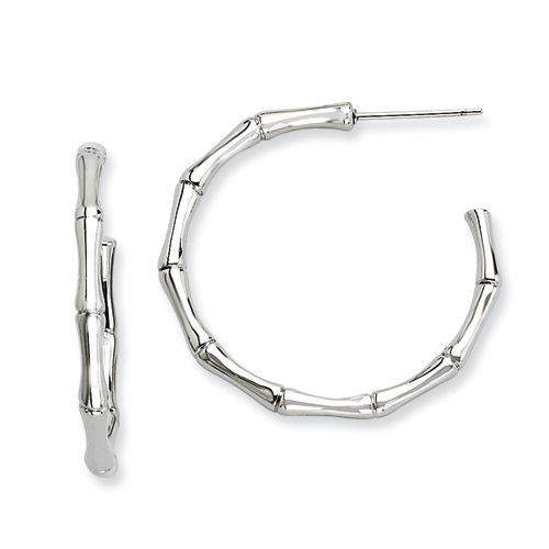 Stainless Steel Polished Bamboo J Hoop Earrings