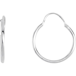 14K White Gold Diamond-Cut 3x65mm Round Hoop Earrings